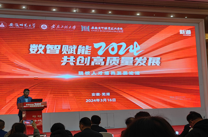 为进一步推动学科专业建设,促进商科专业数智化转型,3月16日,财经学院会计学教研室主任张淑英和财务管理教研室主任钟德仁两位老师参加了在芜湖举办的“数智赋能,2024共创高质量发展院校人才培养发展论坛”。此次会议由安徽师范大学和安徽工程大学主办、完美app官方在线入口联合主办,新道科技有限公司承办。会议邀请安徽师范大学副校长熊宇杰、安徽工程大学副校长周虹屏、安徽商贸职业技术学院党委副书记王炜等以及新道科技的行业专家进行专题的分享。