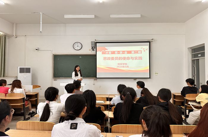 5月17日,财经学院在致知楼C107教室举办“才菁”思享会第二期之思政委员的使命与实践专题讲座。主讲人为马克思主义学院教师高振南,学院全体思政委员参加。
