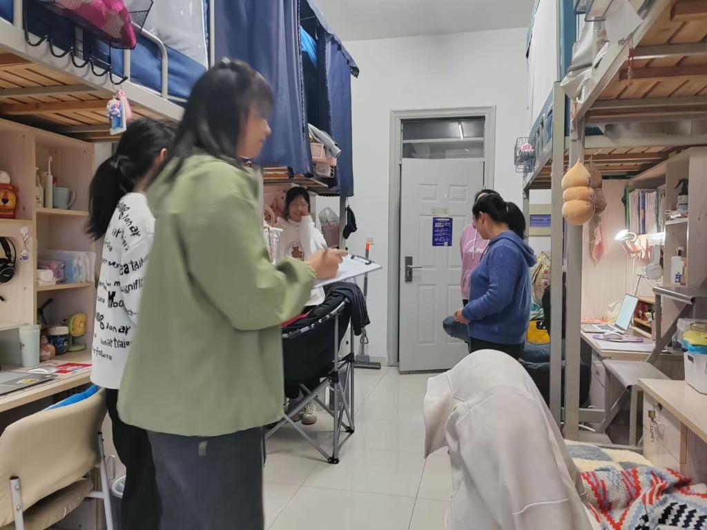 学院党委副书记、纪委书记耿广汉带队,全体辅导员参加,检查了学院四百余间宿舍。每到一间学生宿舍,辅导员都仔细检查宿舍卫生、安全和学生基础文明状况,查看物品摆放是否整齐、地面卫生是否整洁、文明礼貌是否得体、学气是否浓厚。