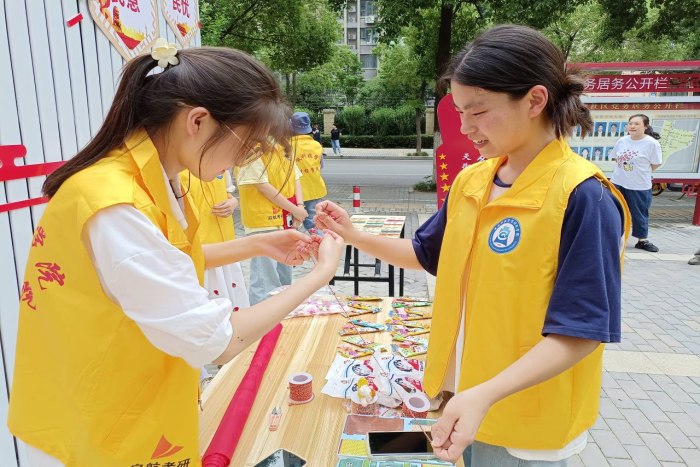 活动伊始,同学们向小朋友们介绍了端午节的由来以及端午节的风俗习惯等,让小朋友们从感官上了解了端午历史、深入感受到端午节纪念先贤,保健祈愿的文化内涵。伴随着浓厚的文化氛围,丰富的手工活动也相继开展,有习字书签、编制五彩手链、端午蛋兜、趣味投壶、送艾草佩香囊、组装拼插端午龙舟等项目,让小朋友们动手动脑、分组合作,培养了孩子们勇于探索、团结协作的精神,更加深了对传统节日的直观认识,深切感受到了中华传统文化的传统魅力。活动结束时,参加活动的社区居民都对此次活动的开展表示满意,赞扬同学们以如此特殊的方式欢度传统佳节,让他们切身感受到了端午节浓浓的节日气氛。