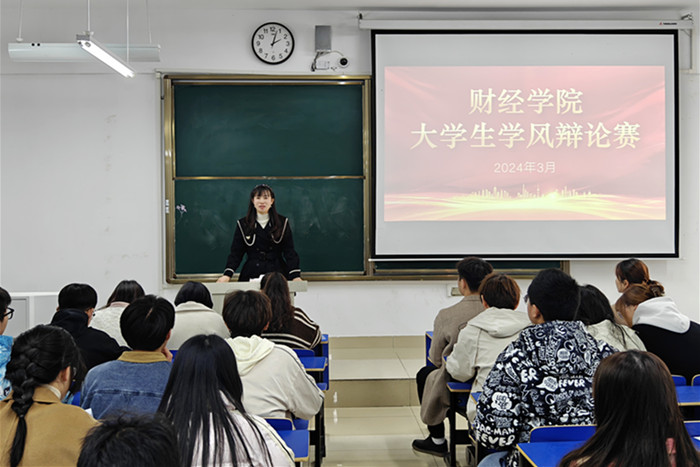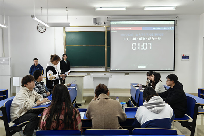 3月20日起,财经学院在尚行楼举办多场大学生学风建设辩论赛。全体23级新生班级参赛。