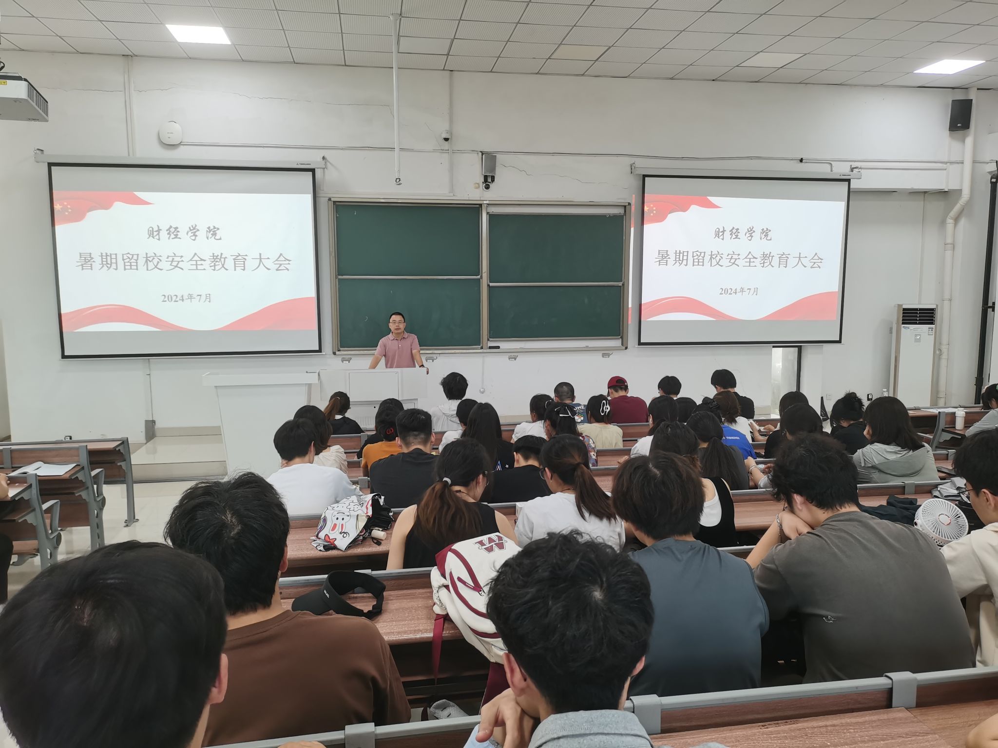 为加强暑期留校学生的安全管理,提高同学们的安全防范意识,确保留宿学生渡过一个平安、充实的假期,财经学院于7月5日在致知楼A111召开大学生暑期留校安全教育大会。学院党委副书记、纪委书记耿广汉、25届毕业班辅导员以及留宿学生参加会议。