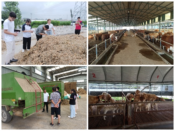 7月19至23日,师生一行赴临泉牛羊养殖场开展实践调研。期间,在临泉县中原牧业发展中心工作人员张勇、曹永波及部分乡镇畜牧兽医站负责人的带领下,先后走访调研了11家代表性的牛羊养殖场,其中包含了7个肉牛场、3个羊场及1个肉牛交易大市场。此次调研,调研团队重点考察了牛羊场布局及圈舍条件、养殖模式,常用的饲料种类及合理搭配技术、青贮玉米品质情况、夏季防暑降温措施以及牛羊疫病防控及粪污资源化利用方面的实践。同时,与牛羊场负责人及技术人员进行深入交流,了解到当前临泉县正大力发展牛羊产业,并制定了一系列促进肉牛肉羊产业发展的相关政策。同时还了解到生产中还存在一些问题,如当前肉牛肉羊价格与往年相比价格普遍较低,饲草料价格居高不下,养殖经济效益偏低等问题。通过实地观察,规模化牛羊养殖场饲养管理整体上均较为规范,但部分家庭养殖场仍存在圈舍条件简陋、养殖密度大、科学养殖与管理技术还较为欠缺等现实问题。