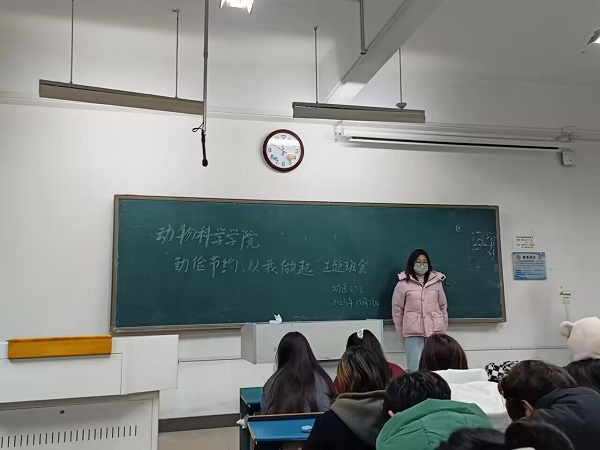 为帮助学生增强节约意识,树立正确消费观念,2023年12月,动物科学学院各班级组织召开了“勤俭节约 从我做起”主题班会。