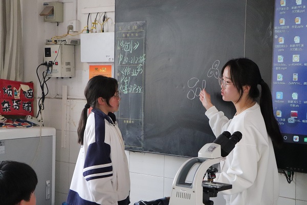 当日的实践活动包括“洋葱鳞片叶的质壁分离和复原”和“口腔上皮细胞观察”的生物实验,并学习动植物细胞的相关知识。在实验的过程中,志愿者们向同学们示范如何撕取洋葱外表皮,如何刮取自己的口腔上皮细胞以及如何制作切片,同时让学生们自己动手,协同制作,体验制作过程,观察自己的制作成果。通过实验同学们对生物科学的世界充满了好奇,极大地增强了大家的科学体验感。