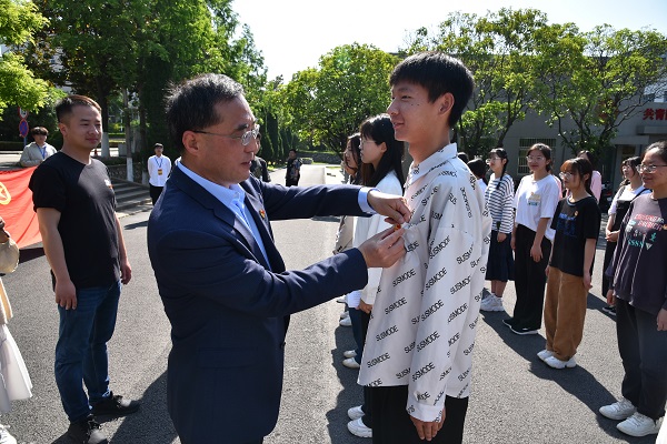 动物医学212班吴向莉,动物医学191班李子燕分别代表新老团员发言,学院领导老师为新团员佩戴团徽,仪式在《光荣啊,中国共青团》团歌歌声中落下帷幕。团员青年们在李焱的带领下,面对团旗,庄严地举起右手,用整齐而洪亮地声音宣读入团誓词。雄壮的誓言,在五四广场上久久回荡,振奋人心。(特约通讯员:李焱 摄影:熊才旺 审核:汤帅)