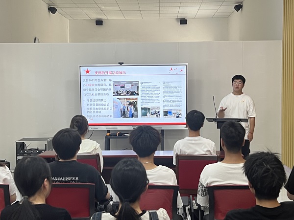 首先,刘纪元介绍了动植物检疫201团支部的基本情况,同时展示了近年来团支部所获得的成果。随后,刘纪元以“夯实思想学以报国”为主题,向大家介绍近期开展的各项工作。刘纪元分享了自己在团支部工作中是如何强化组织建设,在班团一体化中如何共建良好的作风。接着,刘纪元以“志愿青春时青春别样红”为主题,强调在团组织建设中,不只是基本工作的完成,志愿活动也是丰富团支部文化建设的重要组成部分。