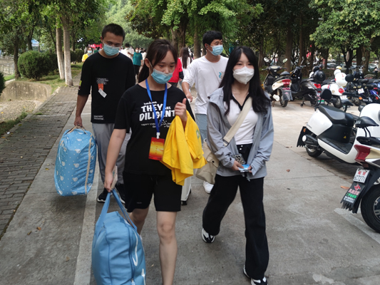 迎新工作如火如荼的进行,到处都是忙碌的身影。学长学姐们不厌其烦地为新生解答着他们提出的各种问题。在完成检录前往宿舍途中,学长学姐们主动拎起新生的行李,一路上谈笑风生,为新生详细讲解学校办学历程、学院专业设置日常生活注意事项等问题。