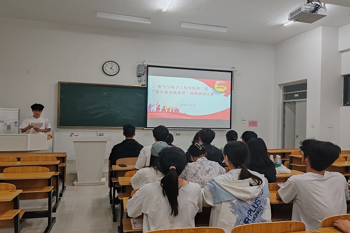 为了解和传承家乡党史,深入学习宣传贯彻党的二十大精神,11月9日下午,电气与电子工程学院于致知楼B106开展了第三届“家乡党史我来讲”视频演讲比赛活动。学院团委书记张成孜、研究生团支部书记杨彩云及第八届学生会负责人担任评委,2022、2023级学生代表参加活动。