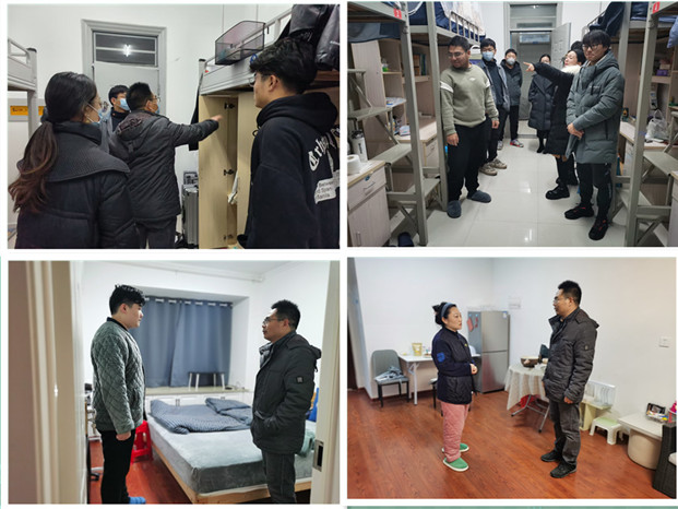 学院党委副书记、纪委书记尚磊带领辅导员采取不通知、不打招呼,突击检查了学生宿舍,重点检查宿舍内消防安全隐患、用电情况、是否违规使用电器、是否有饲养动物、是否存在物品乱摆放、是否有私自外宿、夜不归宿等情况。针对个别宿舍存在的卫生不达标,电源线插板上床等问题,对相关责任人进行了严肃的批评教育,并责令现场整改。检查中,辅导员随机查问学生对学校学院的安全管理制度了解程度,对安全知识的掌握情况,是否理解宿舍“六个严禁”的规定。希望大家保持宿舍卫生整洁,预防冬季传染性疾病。要牢记安全无小事,时刻绷紧安全弦,在安全前提下,养成良好的作息习惯,提高宿舍学习氛围,在争创文明宿舍、学习型宿舍活动中形成比、学、赶、帮、超的争先创优新局面。