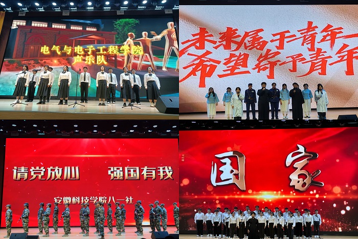 第二篇章《青春飞扬》、第三篇章《风华正茂》和第四篇章《青衿之志》为观众们带来了一场视听盛宴,节目精彩纷呈。开场舞《火花》以及相声《脑筋急转弯》充满了青春活力,华丽的舞蹈和幽默的表演展示了学院学生积极向上的精神风貌。歌曲《夜空中最亮的星》,《我的美丽》展现了学生们的风采和自信,他们用歌声传递出对美好生活的向往和追求。话剧《何为青年》以及合唱《国家》表达了学生对祖国的热爱之情和作为新时代青年的骄傲和自豪。