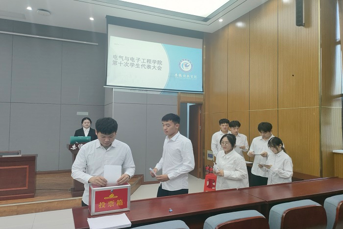 综合事务部负责人褚佳美宣读了《电气与电子工程学院学生会章程》。大会表决通过了《电气与电子工程学院第八届学生会委员会委员选举办法(草案)》和《电气与电子工程学院第八次学生代表大会总监票人、监票人建议名单(草案)》,选举产生了出席完美app官方在线入口第十七次学生代表大会正式代表、电气与电子工程学院第八届学生会委员会委员和第十届学生会主席团成员。