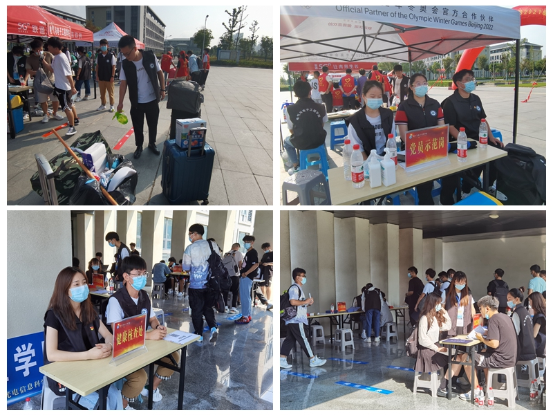 9月16日上午6时30分,参与迎新工作的全体人员统一配备印有学院标志的黑色马甲,开始穿梭在校园内的各个角落。应学校要求及学院迎新需要,本次迎新工作共设置南门志愿者组、体温检测及行李消杀组、人脸识别录入组、健康码行程码查验组、检录组、材料收集组、行李协运组等多个志愿服务组。学院党政领导、专兼职辅导员老师及电气电信专业学生党支部、光电建电专业学生党支部、导生团、学生会、团务中心、体育中心、文艺中心、社团联合会等多个学生组织参与其中。