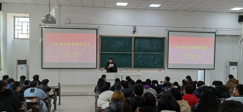 12月29日下午,电气与电子工程学院于致知楼A111召开电气工程及其自动化和建筑电气与智能化专业本科生学业导师制启动仪式暨师生见面会。学院全体电气、建电专业导师,专职辅导员张成孜、于宏亮出席会议,全体2021级电气、建电专业学生和专业导生参加大会。会议由电气工程系主任周小杰主持。