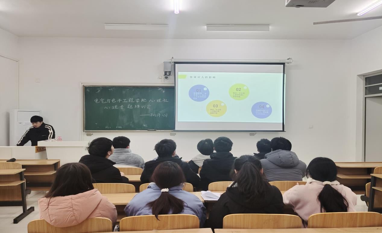 12月25日下午5点,电气与电子工程学院在致C205举行了心理委员培训会,参加此次培训的有电气院各班心理委员以及心理社社员,培训会由一米阳光心理社社长吴健飞主持。