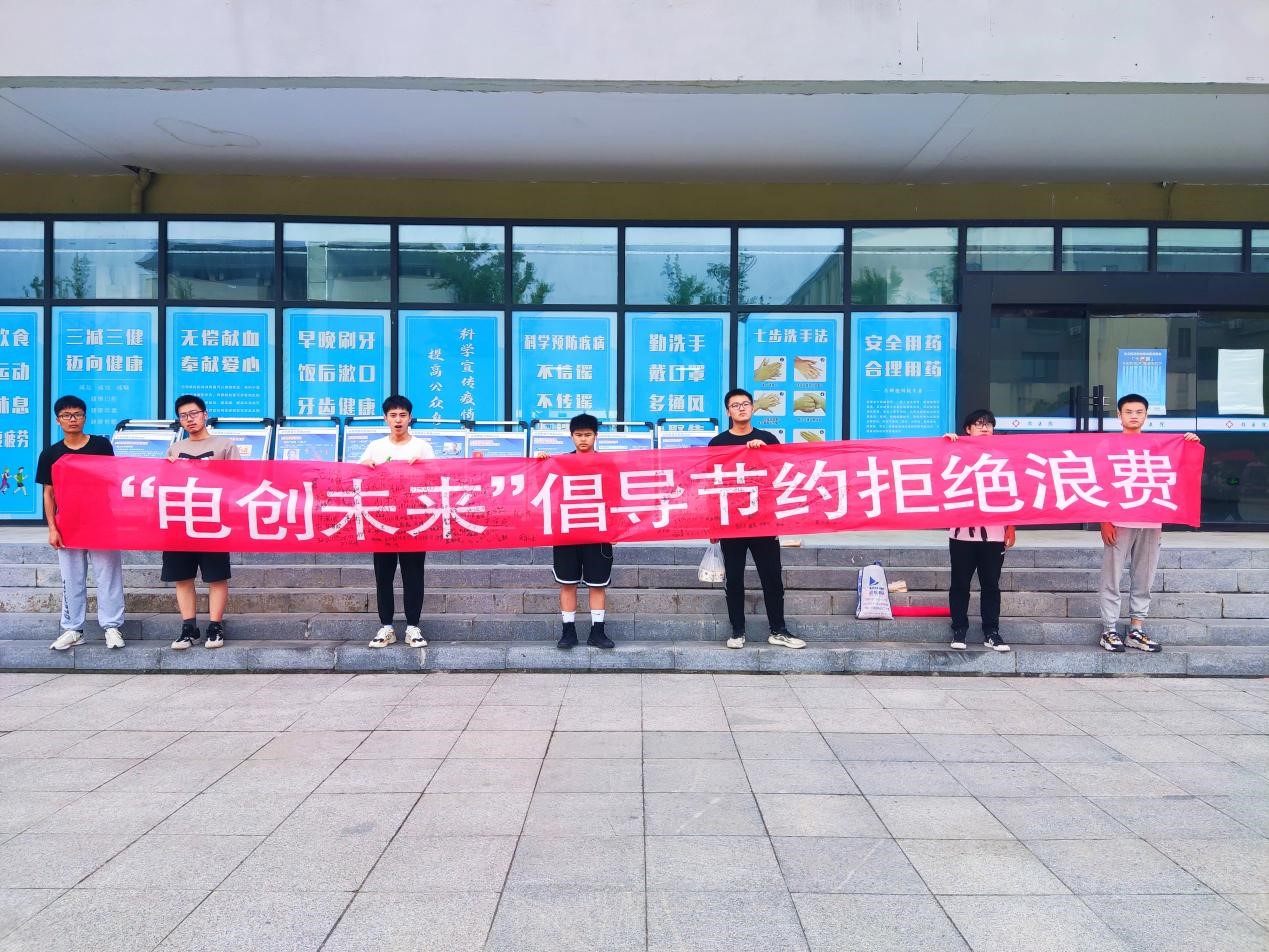 4月26日,为传承发展绿色校园文化建设,电气与电子工程学院于原超市广场开展了“倡导节约,拒绝浪费”的主题活动。