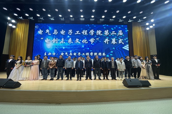 为推动校园文化和谐发展,全面推进素质教育,使学生在良好的校园文化环境中陶冶情操,4月23日下午,电气与电子工程学院于东辅楼报告厅召开“电创未来”文化节表彰大会暨第二届“电创未来”文化节开幕式。学院党委书记骆海邦,党委副书记、纪委书记尚磊,校团委副书记王乐,学院各系室负责人,专职辅导员及2022级全体学生参加。