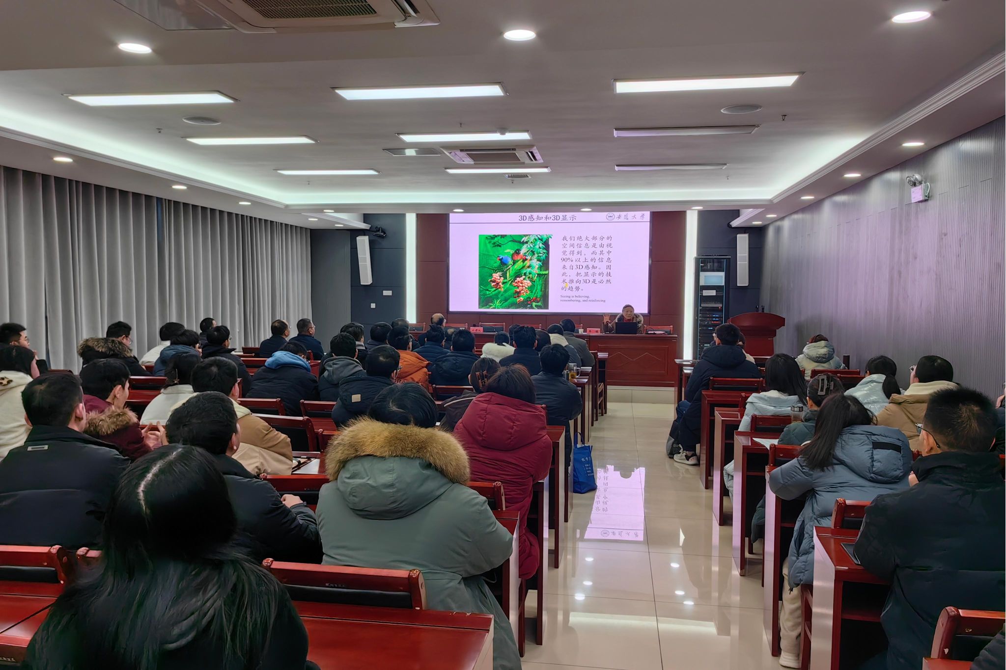 韦教授于西辅楼111会议室作了“全息视频显示的核心器件——我的梦”学术报告,报告会由王孝义主持。报告深入浅出地介绍了显示技术的终极方法—全息术三维显示技术的提出、发展和研究现状,重点介绍了韦教授所在课题组对全息三维显示的核心器件—空间光调制器的改进模型、器件的设计、制备及相关实验成果;介绍了近期在傅里叶模计算和散射矩阵计算取得成绩,并对未来有关空间光调制器的电路模型和像素电路设计、高频数字脉冲驱动下向列相液晶的动力学研究和编码、驱动电路的设计等方面进行了展望。报告会上,多位教师对与自己研究领域相关的问题进行了现场讨论,韦穗教授进行了详细的回答并给出了富有建设性的研究建议。