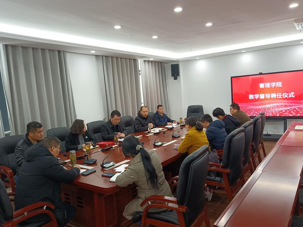 3月17日上午,管理学院在龙湖校区西辅楼三楼会议室召开教学督导聘任暨期初教学工作会议。学院党政领导、三位新聘任教学督导员及各系室主任出席了会议,会议由党委书记丁景良主持会议。