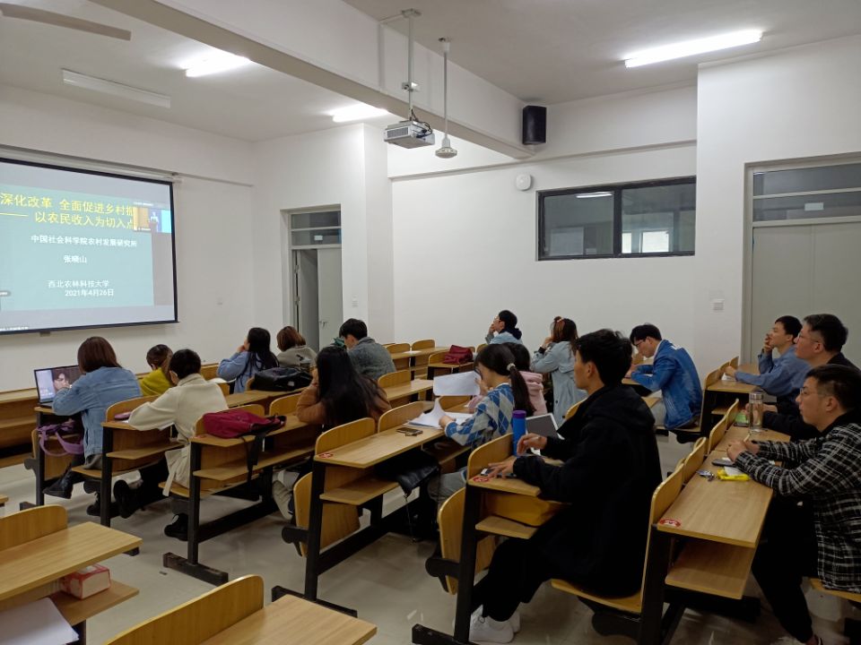 4月26日上午,2020级农业管理专业全体研究生在龙湖校区致知楼B410通过腾讯会议参加了主旨报告会。中国社会科学院张晓山研究员、浙江大学钱文荣教授、中国人民大学仇焕广教授、北京大学杨汝岱教授、同济大学程名望教授以及西北农林科技大学夏显力教授分别作了题为“深化改革 全面促进乡村振兴——以农民收入为切入点”“中国农地制度改革:目标、困境与出路”“打好种业翻身仗:困境与选择”“机械化、社会化服务与农业生产效率”“乡村振兴:事实、逻辑与未来”“黄河流域农业农村高质量发展中的几个重点问题”等学术报告。