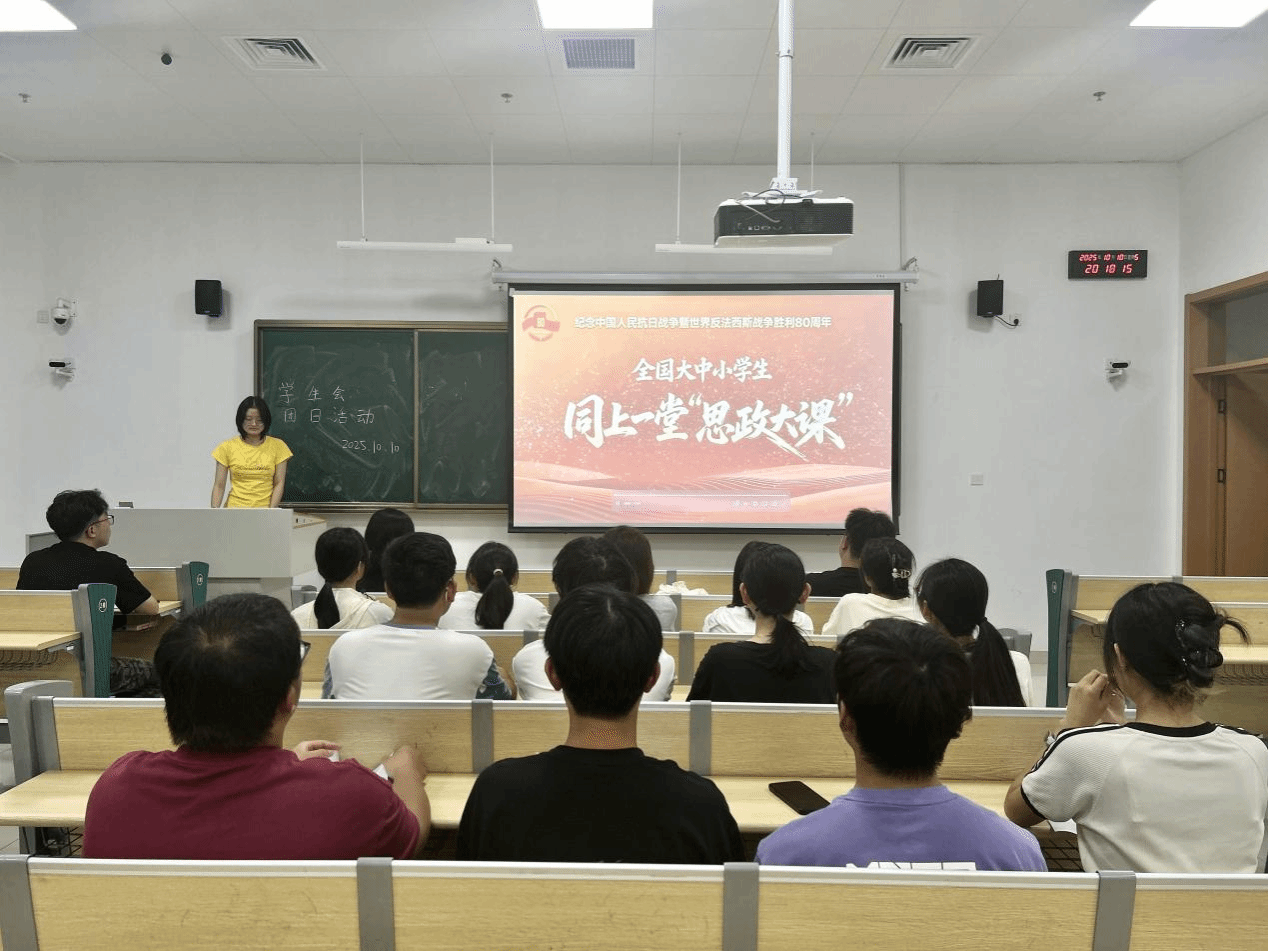 为纪念中国人民抗日战争暨世界反法西斯战争胜利80周年,传承发扬伟大抗战精神,近日,智能制造学院学生会在学思楼1号楼102教室开展主题团日活动,集中组织学生观看“全国大中小学生同上一堂‘思政大课’”。