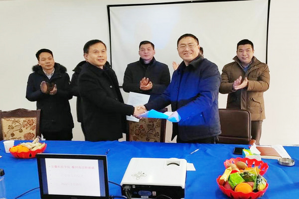 为进一步推进学院2022年“入企下乡”专项行动工作开展,1月15日下午,学院党委书记、院长陈丰,党委副书记、纪委书记张程,党委委员、副院长张华带领曾其良博士科研团队赴滁州市高洁特玻璃制品有限公司签订产学研合作协议。