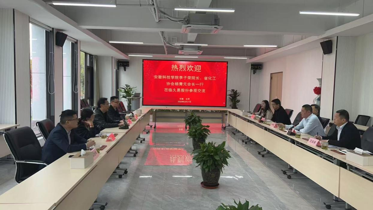 3月27日上午,我校化学与材料工程学院院长李子荣、副院长叶龙强率各系主任一行前往安徽久易农业股份有限公司开展人才培养方案修订意见调研。学院一行受到了公司总经理沈运河、安徽省土壤肥料总站站长曹树钦、安徽省化工行业协会会长杨青元等领导的热烈欢迎。