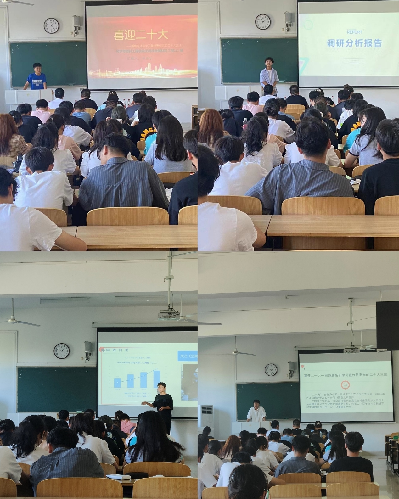 此次社会实践主题涵盖行业就业情况调研、乡村教育关爱、红色教育基地发展现状等多方面内容。各组汇报人就各自社会实践的选题背景、前期准备、活动开展情况、调研分析情况进行了具体的阐述,并重点就调研过程中发现的问题和调研结果进行了重点展示和讲解。薛璐莎针对各小组的汇报内容进行了总结,肯定了大家在社会实践活动中取得的成绩,希望化材学子不断拓展和创新社会实践的内容和形式,提升自身素养和服务水平;不断深化社会实践的深度,进一步了解国情、社情、民情,同时她针对各小组在社会实践活动存在的不足提出要求,鼓励大家在今后的社会实践活动充分发挥团队协作能力和思考创新能力。