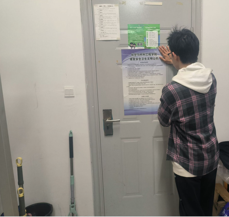 为进一步规范学生宿舍管理,增强学生们的寝室安全意识,营造寝室和谐氛围,化学与材料工程学院于3月9日举行寝室公约上墙暨宿舍安全检查活动。