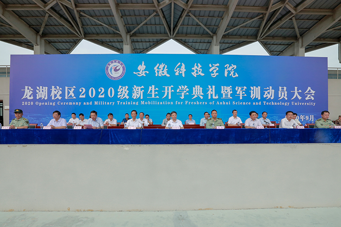 9月21日上午,我校龙湖校区2020级新生开学典礼暨军训动员大会在龙湖校区举行。校党委书记蒋德勤,党委副书记、校长李震,党委副书记韦文联,党委委员、副校长黄远友,党委委员、副校长黄友锐,党委委员、副校长李升和,陆军装甲兵学院蚌埠校区党委常委、管理保障处处长刘新,保障处参谋李国梁,陆军装甲兵学院蚌埠校区教练勤务营二级军士长、龙湖校区军训团团长牟江伟等出席大会并在主席台前排就座。大会由黄远友主持。