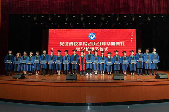 6月24日和25日,我校分别在凤阳校区和龙湖校区举行2021年毕业典礼暨学位授予仪式。党委书记蒋德勤,党委副书记、校长李震,党委副书记韦文联,党委委员、副校长黄远友,党委委员、纪委书记王强,党委委员、副校长李升和出席典礼并在主席台就座。蒋德勤、李震为毕业生授予学位,扶正流苏,并合影留念。典礼分别由黄远友、李升和主持。