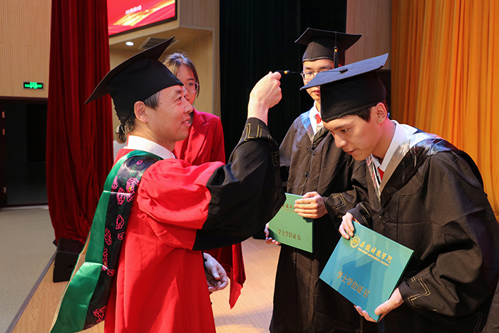党委书记蒋德勤为龙湖校区毕业生授予学位,扶正流苏