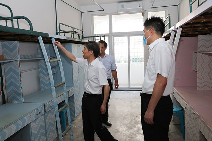 在学生宿舍,校领导仔细查看生活设施配备及整修、卫生保洁等情况,强调要按照高标准、严要求做好新学期教学及新生接待准备工作。针对学生宿舍部分区域存在杂物乱摆放、卫生死角等问题,校领导现场办公,责成相关部门,尽快采取措施解决。