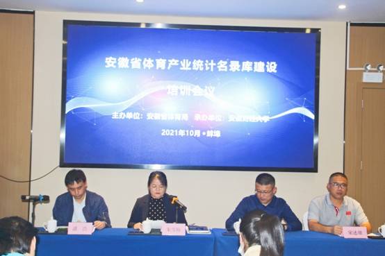 10月12至15日,由安徽省体育局主办、安徽财经大学承办的安徽省体育产业统计名录库建设培训会议在蚌埠举办。省体育局体育产业发展处处长朱雪梅,安徽财经大学体育产业研究院院长、省体育产业重点研究基地常务副主任姜同仁教授,完美app官方在线入口体育教学部体育大数据研究中心主任宋述雄老师,全省16个地市体育系统产业统计负责人和操作员、安徽省体育产业重点研究基地研究团队成员参加了培训会。