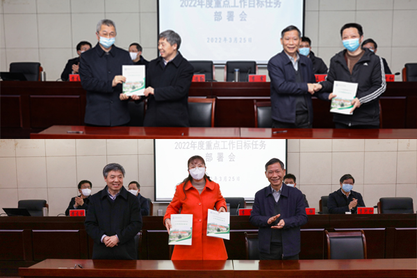 会上,蒋德勤、李震代表学校与二级单位(部门)主要负责人签署了《2022年度工作目标任务书》。