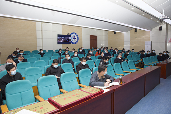 3月25日下午,学校召开单位(部门)2022年度重点工作任务部署会,党委书记蒋德勤,党委副书记、院长李震,党委委员、副院长黄远友,党委委员、纪委书记、监察专员王强,党委委员、副院长黄友锐,党委委员、副院长李升和出席会议,各部门主要负责同志和教学院(部)党、政主要负责同志参加会议,会议在两校区同时举行,凤阳校区会场设在会议中心一楼报告厅,龙湖校区各学院在视频会议室参加会议。会议由李震主持。