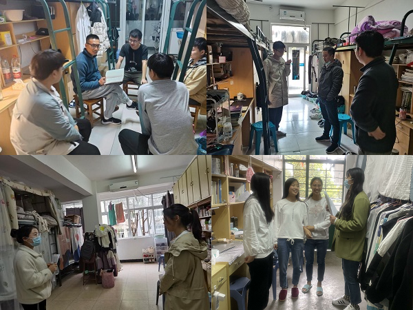 学院党委书记姚勇及全体辅导员多次深入学生公寓,了解学生思想动态和生活学习状况,帮助学生解决实际困难。辅导员们耐心询问疫情期间同学们的线上线下学习、心理和生活状况,同时开展疫情防控期间宿舍防疫工作检查和防疫知识宣传,叮嘱学生要严格按照学校防疫工作通知要求,及时关注学校防疫工作动态,配合学校做好相关防疫工作。叮嘱学生要勤开窗通风,佩戴好口罩,勤洗手,做好自身体温监测和晨、午(晚)上报,保持宿舍卫生清洁、通风,不互相串门,注意个人防护,努力把疫情防控的温度传递到每一个学生。