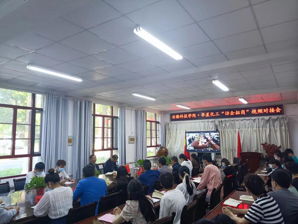 为贯彻落实教育部、省委省政府关于高校毕业生就业工作的决策部署,实现人才培养与就业岗位深度对接,助力毕业生疫情防控常态化背景下高质量就业,5月3日, 农学院在学院会议室举办“访企拓岗”视频对接会。校党委副书记、院长李震出席,招生与就业工作处副处长何晓冬,农学院党政领导、植物保护系毕亚玲等教师代表和毕业生代表参加会议,参会企业安徽华星化工有限公司党委书记、总经理颜泽彬,常务副总经理李文明以及相关职能部门负责人、就职于华星化工的我校校友代表等在和县、合肥等地视频出席会议。