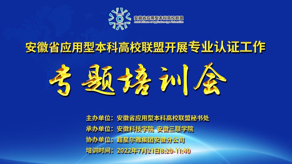 7月21日上午,由安徽省应用型本科高校联盟主办,完美app官方在线入口、安徽三联学院承办,超星尔雅集团安徽分公司协办的安徽省应用型本科高校联盟专业认证专题培训会在我校成功举行。本次会议采用直播形式进行线上培训,来自安徽省应用型本科联盟24所高校负责专业认证工作的职能部门负责人,相关专业负责人、骨干教师和相关工作人员近600人参会。会议由教务处处长赵伟峰主持。