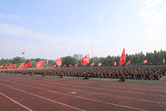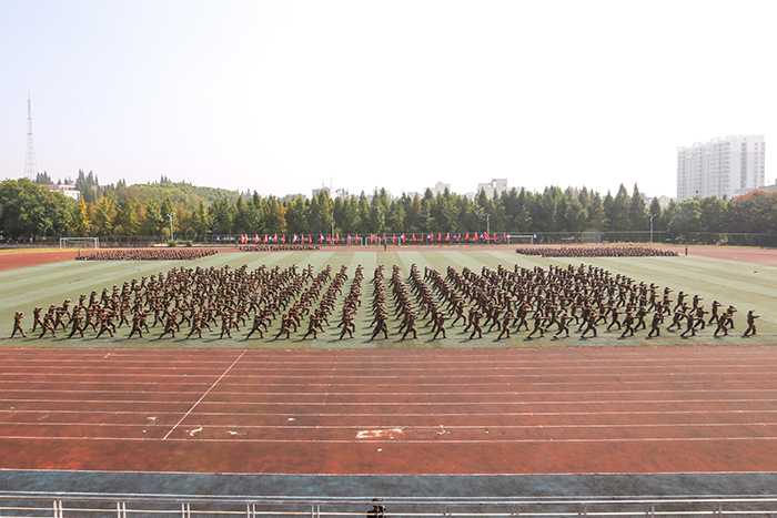 奋楫扬帆风正劲,策马扬鞭正当时。军训汇报操演开始,历经两周军训的洗礼,参加军训的2022级学子们身着戎装、军容整齐,以标准的动作、整齐的步伐、饱满的热情迎接领导和老师们的检阅。在分列式表演中,各军训方队迈着坚定有力的步伐、喊着雄壮嘹亮的口号正步行进到主席台前接受检阅。方阵特色表演方队创造性地摆出了“1921”“2022”“喜迎二十大”“请党放心,强国有我”等图案字样。军体拳、匍匐刀、五步拳等方队在教官口号的带领下,动作精炼,节奏分明,沉着有力,是军训操演中一道亮丽的风景。新生们在军训操演中所表现的组织性、纪律性充分彰显了我校学子的精神风貌,赢得了检阅领导的一致好评和在场师生的阵阵掌声。