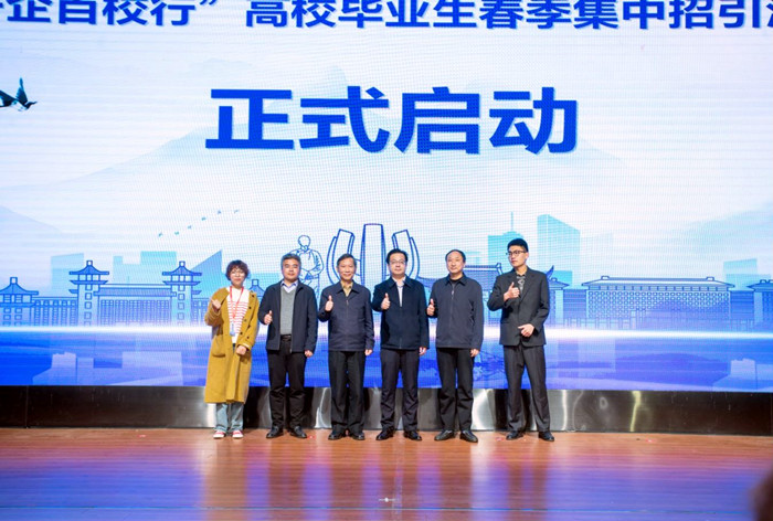 3月7日,滁州市“千企百校行”高校毕业生春季集中招引活动在我校启动。校党委副书记、院长李震出席仪式并致辞。滁州市人力资源和社会保障局党组书记、局长罗圣权作宣传推介。