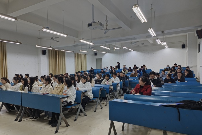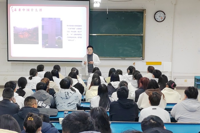 人文学院辅导员方明旺围绕“爱国、团结、奋斗、科学、互助”五个关键词,从三个方面分享真实案例,融入多模态教学元素,强化沉浸式体验,与学生深入互动交流,教育引导学生立志做有理想、敢担当、能吃苦、肯奋斗的新时代好青年。