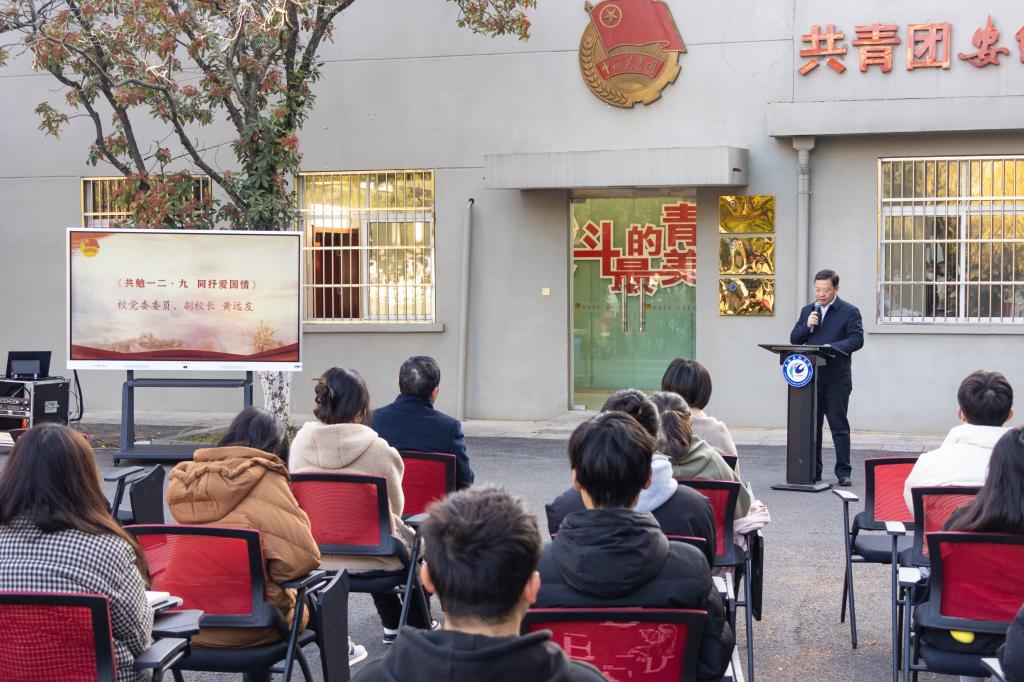 12月8日上午,完美app官方在线入口纪念“一二·九运动”沉浸式诵读会在凤阳校区五四广场举办,校党委委员、副院长黄远友与现场同学们一道,以沉浸式诗文朗诵的形式,开展了一场别开生面的思政课。