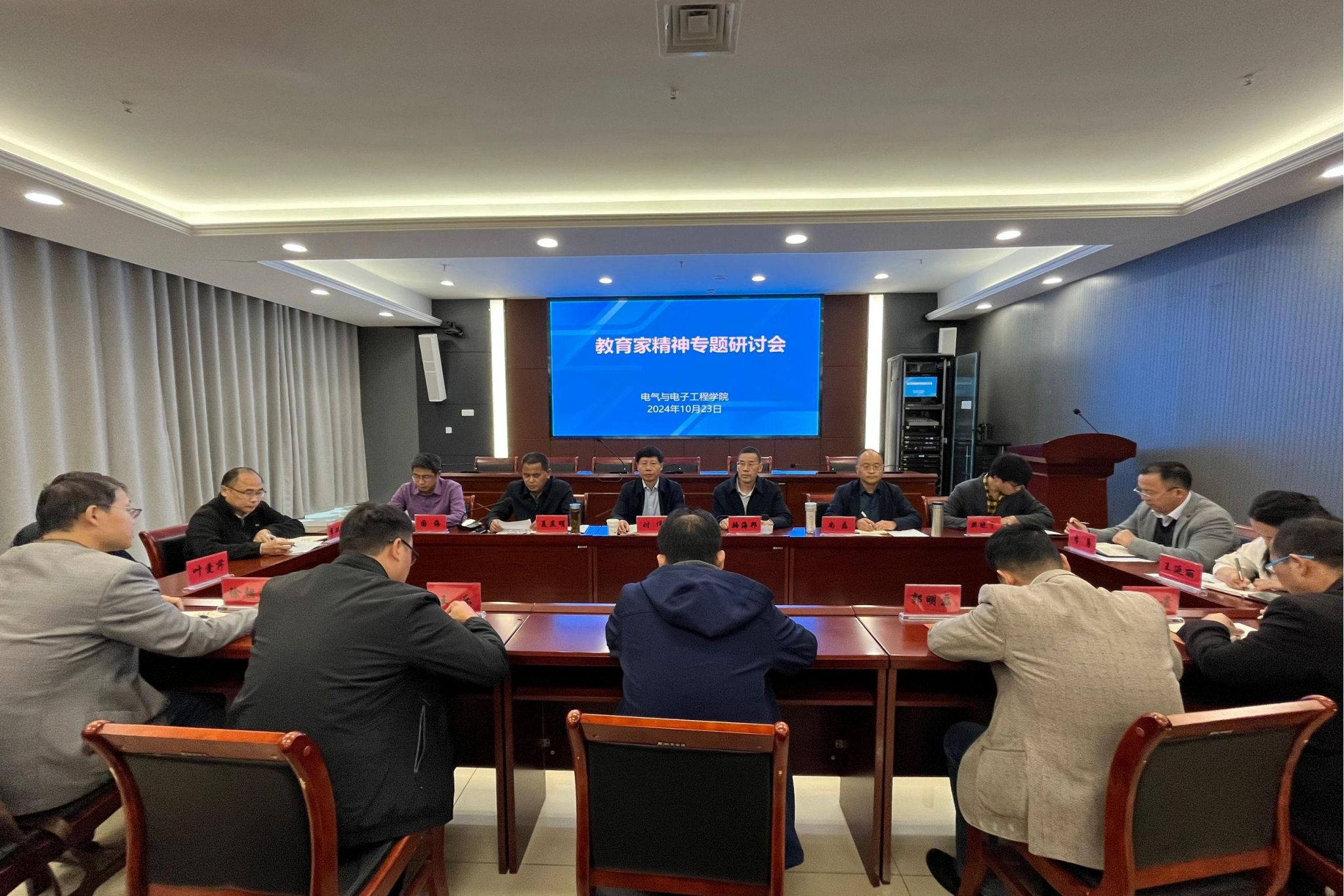 10月23日,电气与电子工程学院在西辅楼111会议室召开教育家精神专题研讨会。校党委书记时伟莅临指导,学院党政班子、全体教职工参加会议,会议由学院党委书记骆海邦主持。