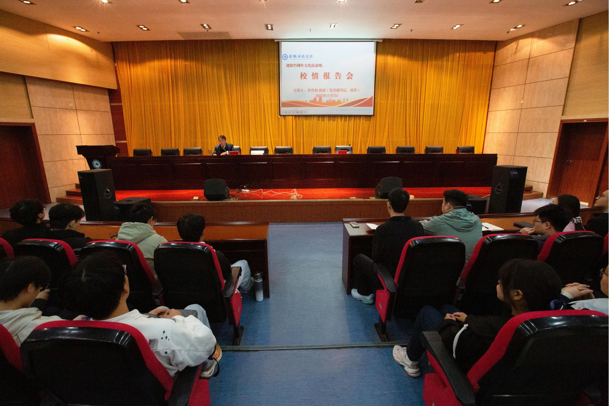 在安科成才,向未来进发。11月7日校庆日当天上午,我校在凤阳校区会议中心二楼报告厅举办以“传承•融入•共建”为主题的校情报告会。报告会由党委副书记、校长李升和教授主讲。党委宣传部、党委教师工作部和团委承办。我校300余名新进青年教师和凤阳校区新生代表参加报告会。