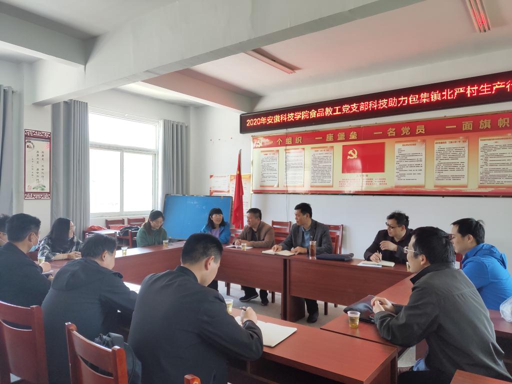 4月25日,食品工程学院食品教工党支部前往蚌埠市怀远县鲍集镇北严村进行“科技助力农业经济”活动。北严村第一书记、驻村扶贫工作队队长陈雁南,村第二党支部书记、扶贫专干崔玉,以及部分村干部等参加了交流。