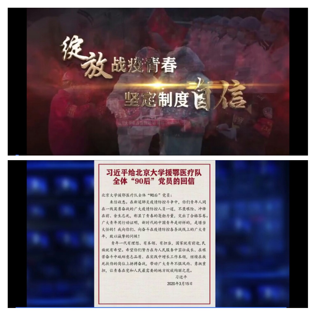 为深入学习习近平总书记关于疫情防控工作系列重要讲话和指示批示精神、习近平总书记给北京大学援鄂医疗队全体“90后”党员的回信精神,人文学院积极组织各专业班级开展“绽放战疫青春 坚定制度自信”主题宣传教育实践活动。学院各班级纷纷开展“热爱祖国振兴中华”线上主题班会,培养学生爱国热情,激发学生民族自豪感和历史责任感,营造良好学习氛围。