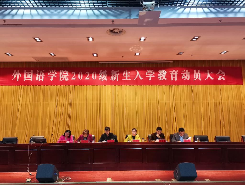 丹桂飘香,金秋送爽。20级新生带着青春的活力,带着对知识的不懈追求,带着对大学校园生活的无限憧憬,迈进了完美app官方在线入口外国语学院。为了让新生更快适应新环境,适应新的生活,顺利、平稳、有效地进入大学生活。10月21日下午14:00,外国语学院在新图书馆第二报告厅举行了新生入学教育动员大会。外国语学院院长陈德用、党总支书记蔡为青、副院长刘萍、教学秘书周海平、英语专业教研室主任兼英语专业负责人洪民老师、翻译专业教研室主任兼翻译专业负责人邓兆红老师、分团委书记陈慧中、专职辅导员宋兵兵,学院教师代表,全体20级新生参会,大会由刘萍主持。