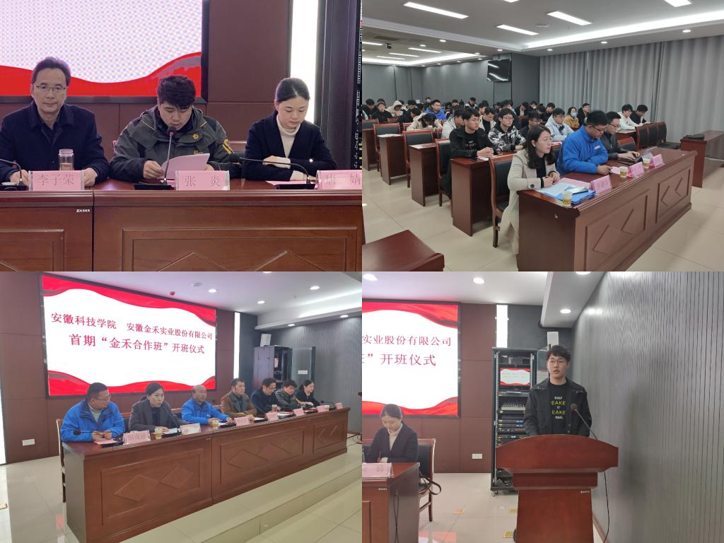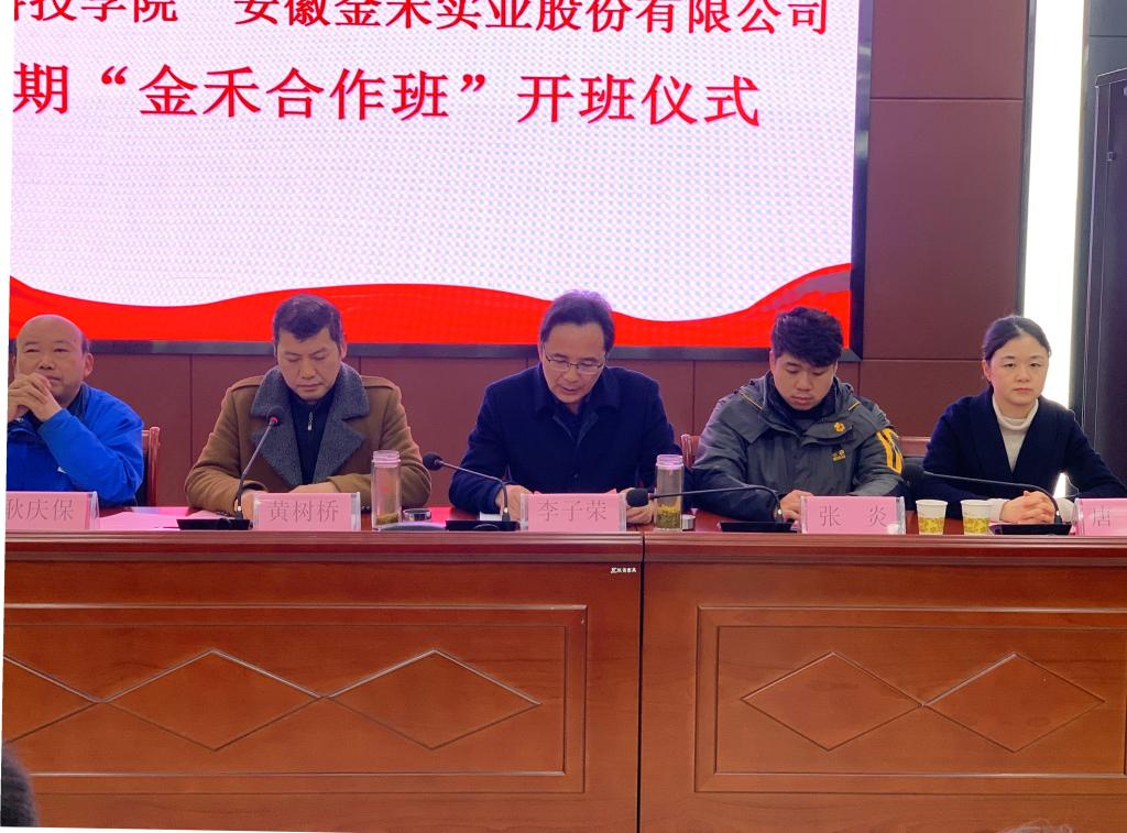 李子荣介绍了“金禾合作班”的育人目标、教学内容安排、管理架构,并就下一步推动双方成立产业学院提出了设想和建议。张炎宣读了《关于成立完美app官方在线入口 安徽金禾实业股份有限公司首期“金禾合作班”的通知》文件,金禾班企方兼职班主任燕岩、院方兼职班主任薛璐莎和学生代表顾涛依次发言。