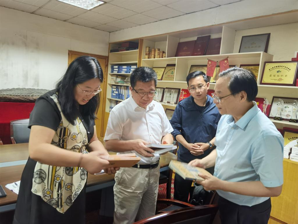 高兴之余,华庆特地拿出其专著和参与出版的涉农藏书赠与何世潮一行,并应何世潮等的请求在书的扉页上郑重签名。何世潮当场表示要将此书送与校史馆和校图书馆珍藏,让更多人受益,让农耕文化发扬光大。